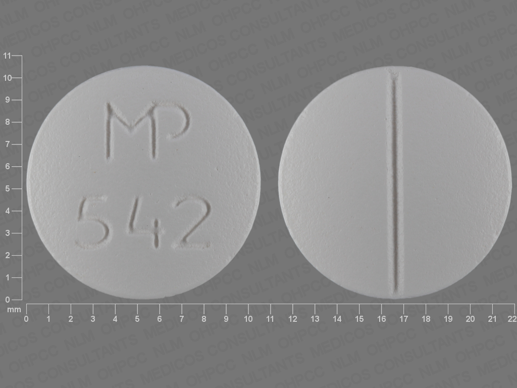 This medication is a White Round 10 mm, Tablet with imprint "MP;542". It is manufactured by Mutual Pharmaceutical Company, Inc.. For details please contact your physician.
