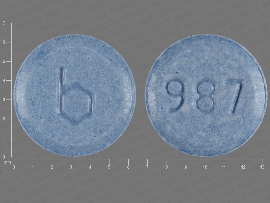This medication is a Blue Round 6 mm, Tablet with imprint "b;987". It contains Norgestimate 0.25 mg;ethinyl estradiol 0.035 mg; of Norgestimate[norgestimate];ethinyl estradiol[ethinyl estradiol];. It is manufactured by Teva Pharmaceuticals USA, Inc.. For details please contact your physician.