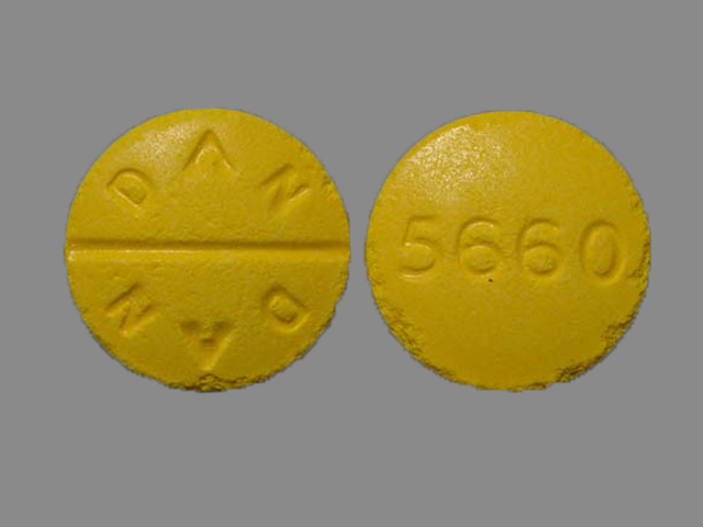 This medication is a Yellow Round 11 mm, Tablet with imprint "DAN;DAN;5660". It contains Sulindac 200 mg; of Sulindac[sulindac];. This belongs to the Nonsteroidal anti-inflammatory drug pharmacologic class. It is manufactured by Actavis Pharma, Inc.. For details please contact your physician.