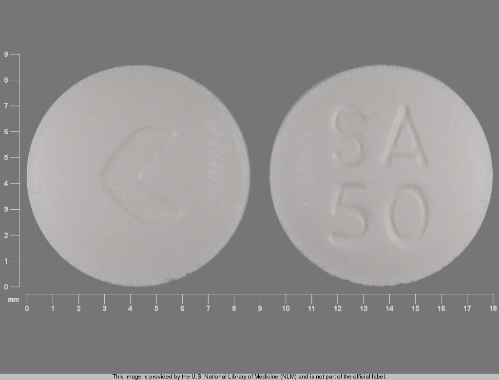 This medication is a White Round 9 mm, Tablet with imprint "SA;50". It contains Sumatriptan succinate 50 mg; of Sumatriptan succinate[sumatriptan];. This belongs to the Serotonin-1b and serotonin-1d receptor agonist pharmacologic class. It is manufactured by Actavis Pharma, Inc.. For details please contact your physician.