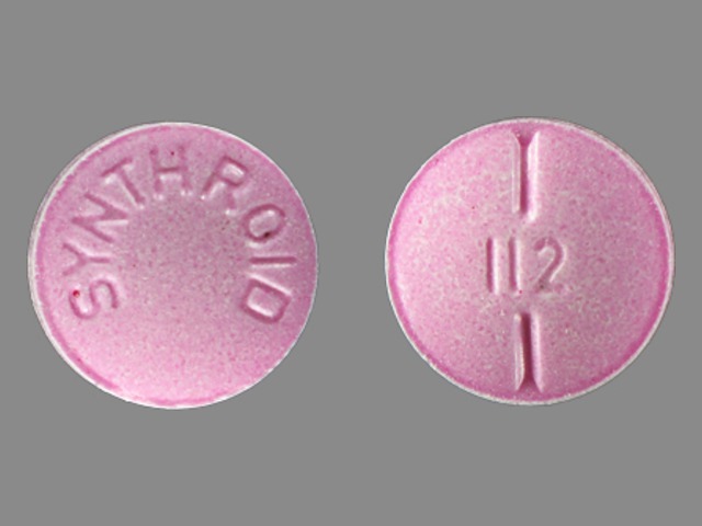 This medication is a Red Round 7 mm, Tablet with imprint "SYNTHROID;112". It contains Levothyroxine sodium 112 ug; of Levothyroxine sodium[levothyroxine];. This belongs to the L-thyroxine pharmacologic class. It is manufactured by Aphena Pharma Solutions - Tennessee, Inc.. For details please contact your physician.