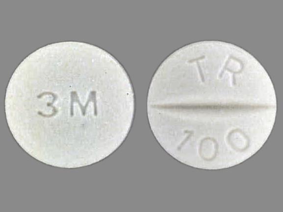 This medication is a White Round 9 mm, Tablet with imprint "3M;TR;100". It is manufactured by 3M Pharmaceuticals. For details please contact your physician.