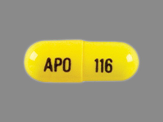 This medication is a Yellow Capsule 14 mm, Capsule with imprint "APO;116". It contains Terazosin hydrochloride 2 mg; of Terazosin hydrochloride[terazosin];. This belongs to the Alpha-adrenergic blocker pharmacologic class. It is manufactured by Apotex Corp.. For details please contact your physician.
