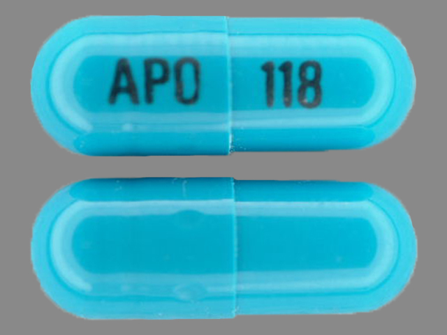 This medication is a Blue Capsule 14 mm, Capsule with imprint "APO;118". It contains Terazosin hydrochloride 10 mg; of Terazosin hydrochloride[terazosin];. This belongs to the Alpha-adrenergic blocker pharmacologic class. It is manufactured by Apotex Corp.. For details please contact your physician.