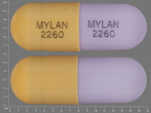 This medication is a Yellow, purple Capsule 16 mm, Capsule with imprint "MYLAN;2260;MYLAN;2260". It contains 1 mg of Terazosin hydrochloride anhydrous 1 mg. It is manufactured by Mylan Institutional Inc.. For details please contact your physician.