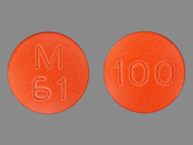 This medication is an Orange Round 10 mm, Film coated tablet with imprint "M;61;100". It contains Thioridazine hydrochloride 100 mg; of Thioridazine hydrochloride[thioridazine];. This belongs to the Phenothiazine pharmacologic class. It is manufactured by Mylan Pharmaceuticals Inc.. For details please contact your physician.