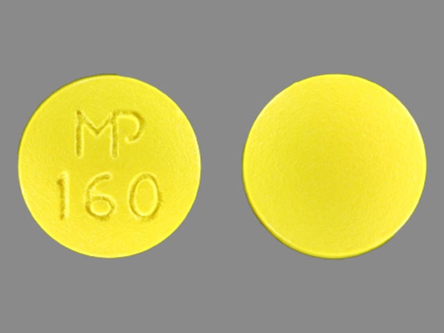 This medication is a Yellow Round 10 mm, Film coated tablet with imprint "MP;160". It contains Thioridazine hydrochloride 100 mg; of Thioridazine hydrochloride[thioridazine];. This belongs to the Phenothiazine pharmacologic class. It is manufactured by Sun Pharmaceutical Industries, Inc.. For details please contact your physician.