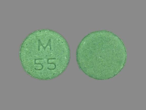 This medication is a Green Round 6 mm, Tablet with imprint "M;55". It contains Timolol maleate 5 mg; of Timolol maleate[timolol anhydrous];. It is manufactured by Mylan Pharmaceuticals Inc.. For details please contact your physician.