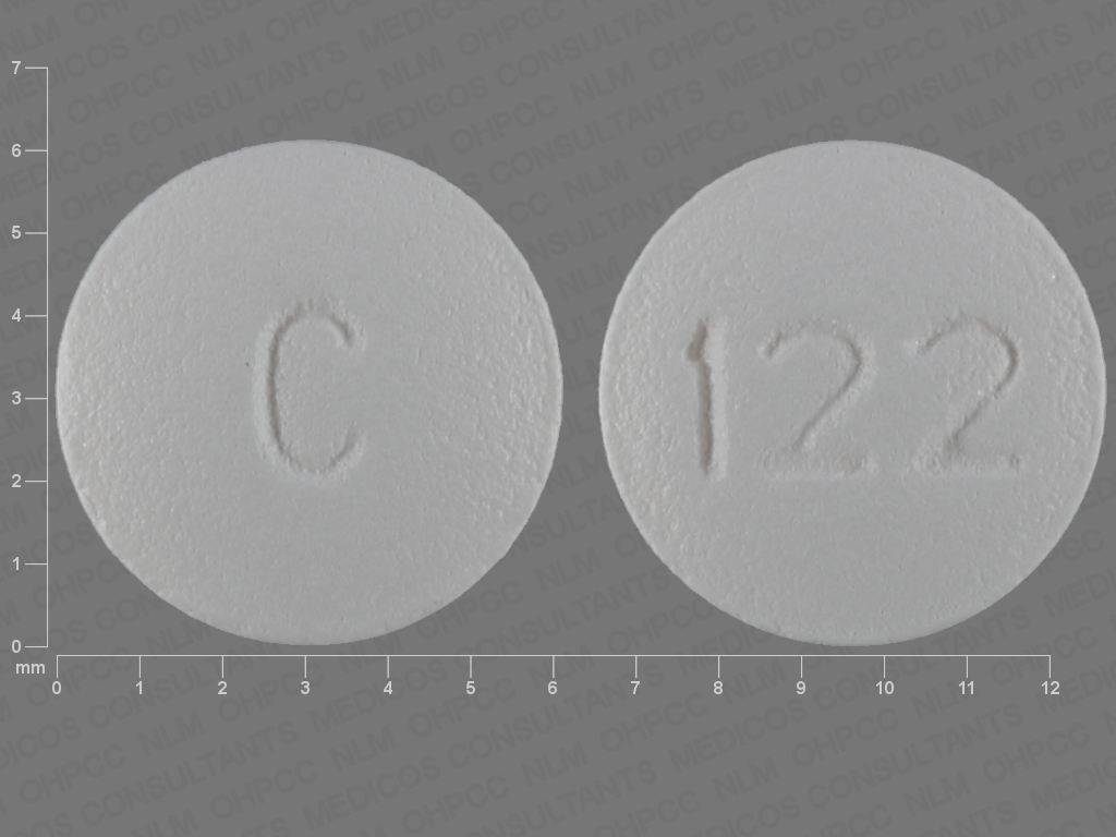 This medication is a White Round 6 mm, Tablet with imprint "122;C". It contains Topiramate 25 mg; of Topiramate[topiramate];. This belongs to the Cytochrome p450 2c19 inhibitors, cytochrome p450 3a4 inducers, decreased central nervous system disorganized electrical activity pharmacologic class. It is manufactured by Cipla USA Inc.. For details please contact your physician.
