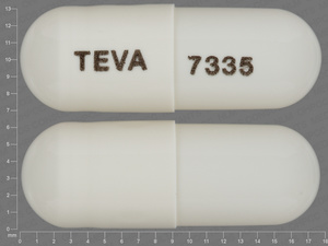 This medication is a White Capsule 18 mm, Capsule with imprint "TEVA;7335". It contains 15 mg of Topiramate 15 mg. It is manufactured by Teva Pharmaceuticals USA Inc. For details please contact your physician.