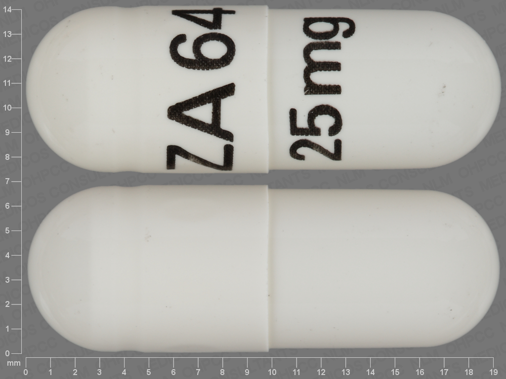 This medication is a White Capsule 19 mm, Capsule with imprint "ZA64;25;mg". It is manufactured by Zydus Pharmaceuticals (USA) Inc.. For details please contact your physician.