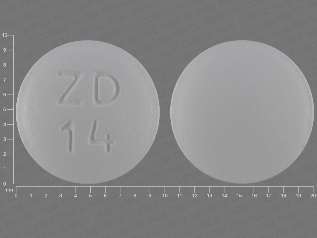 This medication is a White Round 10 mm, Film coated tablet with imprint "ZD;14". It contains Topiramate 100 mg; of Topiramate[topiramate];. This belongs to the Cytochrome p450 2c19 inhibitors, cytochrome p450 3a4 inducers, decreased central nervous system disorganized electrical activity pharmacologic class. It is manufactured by American Health Packaging. For details please contact your physician.