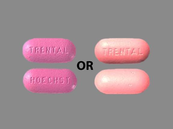 This medication is a Pink Oval 17 mm, Film coated extended release tablet with imprint "Trental". It contains Pentoxifylline 400 mg of Pentoxifylline[pentoxifylline]. It is manufactured by Sanofi-Aventis U.S. LLC. For details please contact your physician.