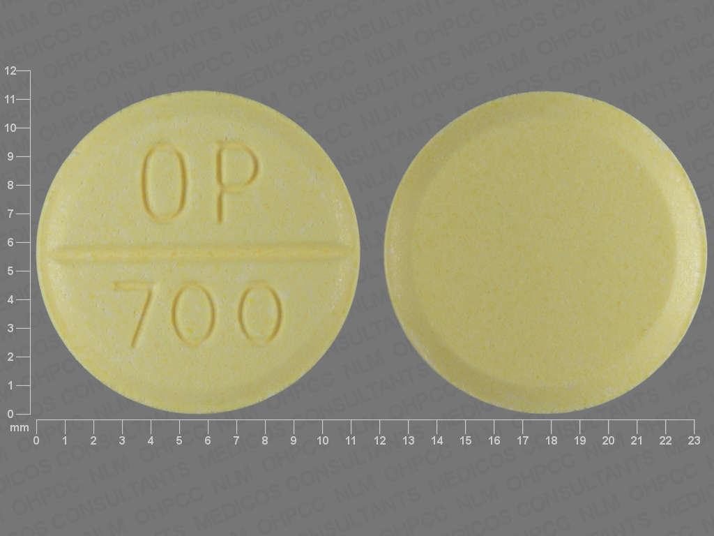 This medication is a Yellow Round 11 mm, Tablet with imprint "OP;700". It contains Bethanechol chloride 50 mg; of Bethanechol chloride[bethanechol];. It is manufactured by Teva Women's Health, Inc.. For details please contact your physician.
