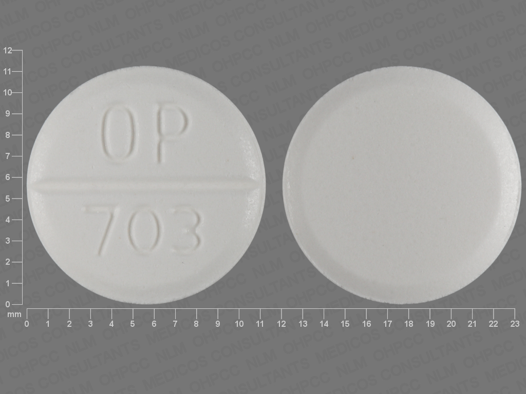 This medication is a White Round 11 mm, Tablet with imprint "OP;703". It contains Bethanechol chloride 10 mg; of Bethanechol chloride[bethanechol];. It is manufactured by Teva Women's Health, Inc.. For details please contact your physician.