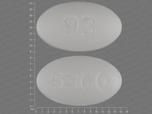 This medication is a White Oval 14 mm, Tablet with imprint "93;5360". It contains 250 mg of Ursodiol 250 mg. It is manufactured by Teva Pharmaceuticals USA Inc. For details please contact your physician.