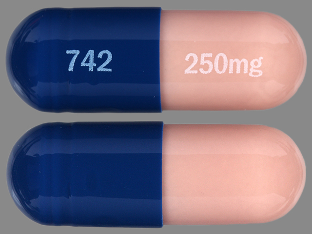 This medication is a Blue;purple Capsule 20 mm, Capsule with imprint "742;250;mg". It contains Vancomycin hydrochloride 250 mg; of Vancomycin hydrochloride[vancomycin];. This belongs to the Glycopeptide antibacterial pharmacologic class. It is manufactured by Akorn, Inc.. For details please contact your physician.