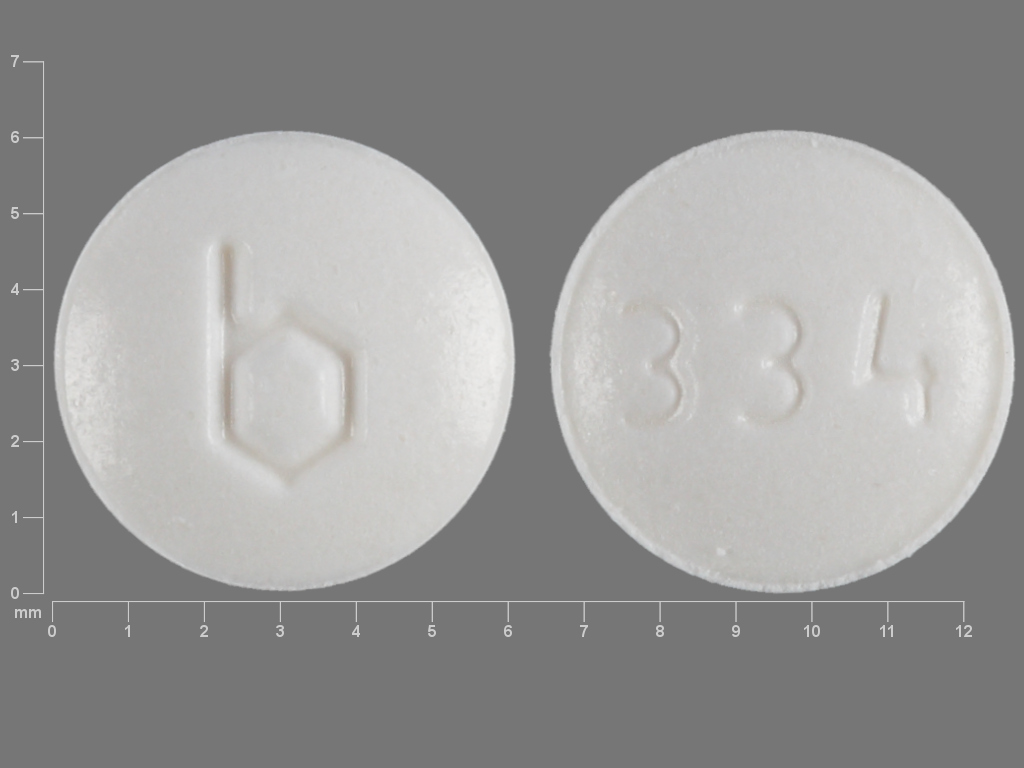 This medication is a White Round 6 mm, Tablet with imprint "b;334". It is manufactured by Teva Pharmaceuticals USA, Inc.. For details please contact your physician.