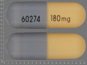 This medication is a Gray, yellow Capsule 20 mm, Extended release capsule with imprint "60274;180;mg". It contains 180 mg of Verapamil hydrochloride 180 mg. It is manufactured by Watson Laboratories, Inc.. For details please contact your physician.