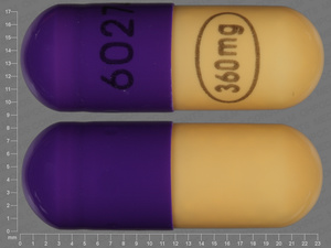 This medication is a Purple, yellow Capsule 23 mm, Extended release capsule with imprint "60274;360;mg". It contains 360 mg of Verapamil hydrochloride 360 mg. It is manufactured by Watson Laboratories, Inc.. For details please contact your physician.