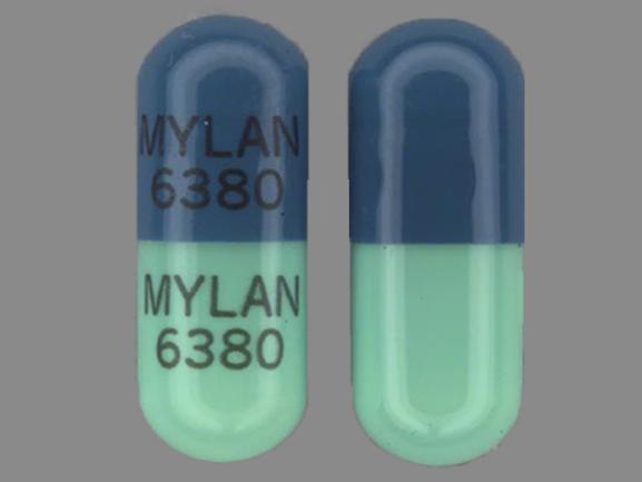 This medication is a Blue;green Capsule 21 mm, Extended release capsule with imprint "MYLAN;6380". It contains Verapamil hydrochloride 180 mg; of Verapamil hydrochloride[verapamil];. This belongs to the Calcium channel blocker pharmacologic class. It is manufactured by Mylan Pharmaceuticals Inc.. For details please contact your physician.