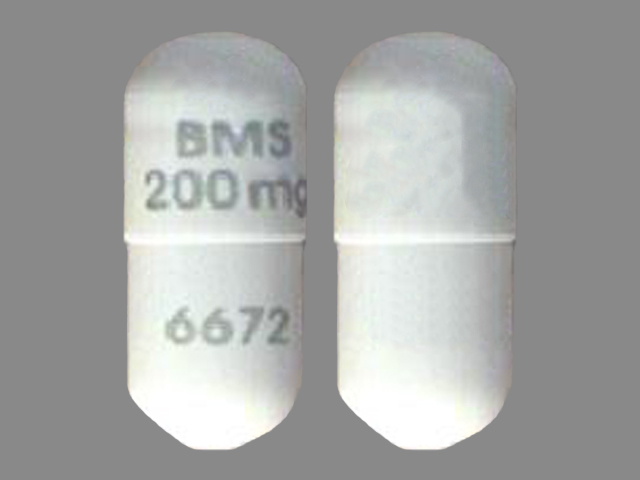 This medication is a White Capsule 18 mm, Delayed release capsule with imprint "BMS;200;mg;6672". It contains Didanosine 200 mg; of Didanosine[didanosine];. It is manufactured by Bristol-Myers Squibb Company. For details please contact your physician.