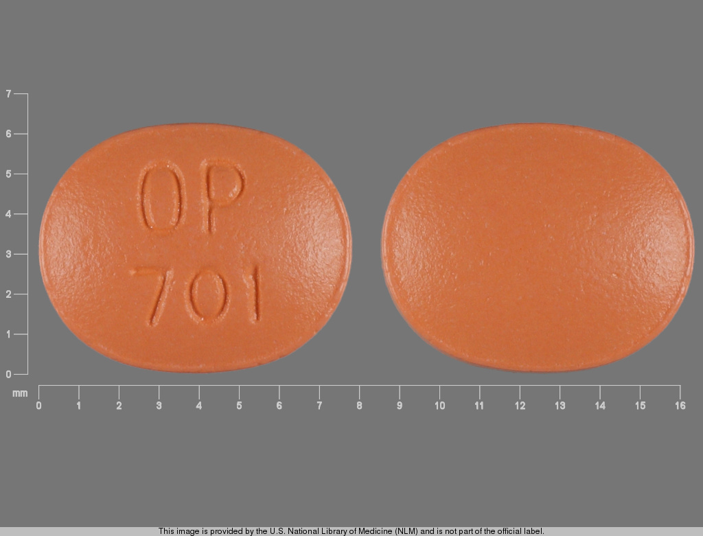 This medication is an Orange Oval 10 mm, Film coated tablet with imprint "OP;701". It contains Protriptyline hydrochloride 5 mg; of Protriptyline hydrochloride[protriptyline];. It is manufactured by Teva Women's Health, Inc.. For details please contact your physician.