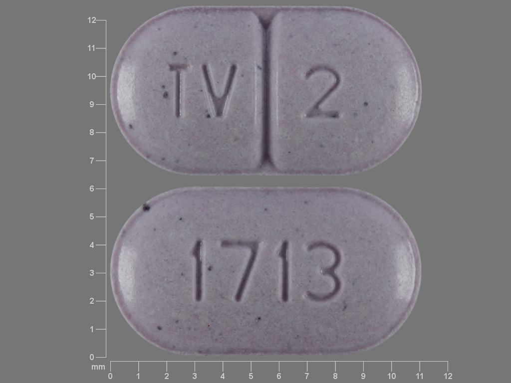 This medication is a Purple Oval 11 mm, Tablet with imprint "TV;2;1713". It contains Warfarin sodium 2 mg; of Warfarin sodium[warfarin];. This belongs to the Vitamin k antagonist pharmacologic class. It is manufactured by Bryant Ranch Prepack. For details please contact your physician.
