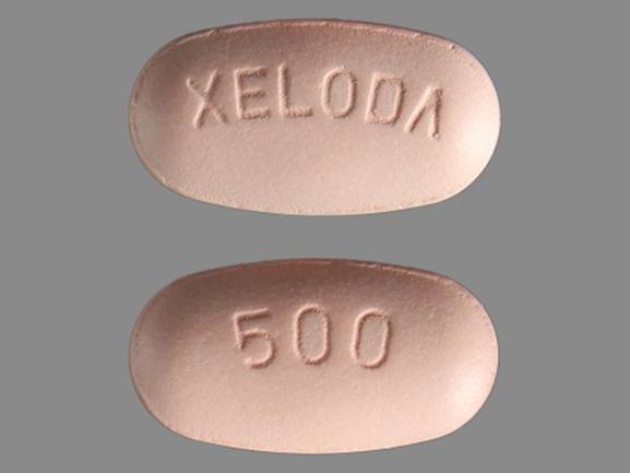 This medication is a Pink Oval 11 mm, Film coated tablet with imprint "XELODA;500". It contains Capecitabine 500 mg; of Capecitabine[capecitabine];. This belongs to the Nucleoside metabolic inhibitor pharmacologic class. It is manufactured by Genentech, Inc.. For details please contact your physician.