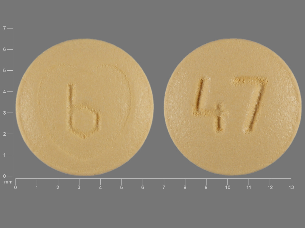 This medication is a Yellow Round 6 mm, Film coated tablet with imprint "b;47". It contains Bisoprolol fumarate 2.5 mg;hydrochlorothiazide 6.25 mg; of Bisoprolol fumarate[bisoprolol];hydrochlorothiazide[hydrochlorothiazide];. This belongs to the Beta-adrenergic blocker pharmacologic class. It is manufactured by Teva Women's Health, Inc.. For details please contact your physician.