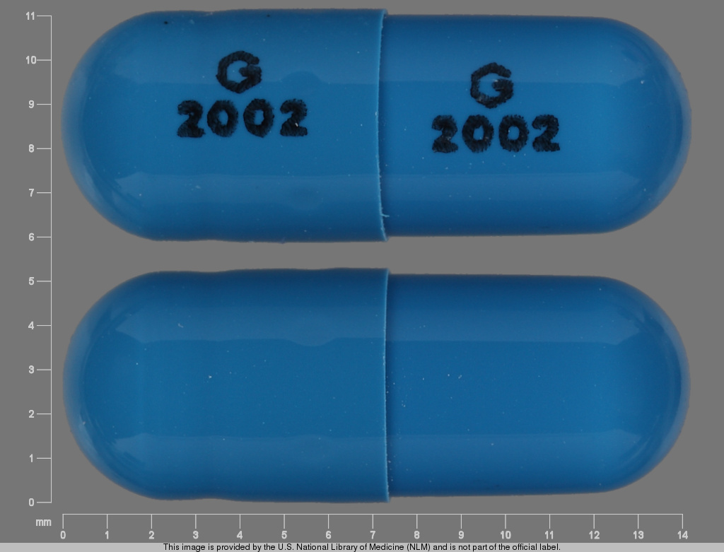 This medication is a Blue Capsule 14 mm, Capsule with imprint "G;2002". It contains Ziprasidone hydrochloride 40 mg; of Ziprasidone hydrochloride[ziprasidone];. This belongs to the Atypical antipsychotic pharmacologic class. It is manufactured by Greenstone LLC. For details please contact your physician.