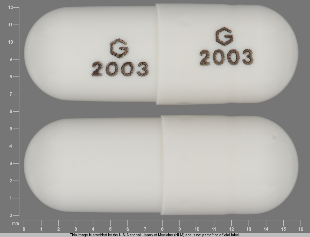 This medication is a White Capsule 16 mm, Capsule with imprint "G;2003". It contains Ziprasidone hydrochloride 60 mg; of Ziprasidone hydrochloride[ziprasidone];. This belongs to the Atypical antipsychotic pharmacologic class. It is manufactured by Greenstone LLC. For details please contact your physician.