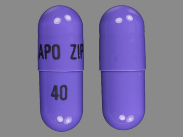 This medication is a Purple;purple Capsule 16 mm, Capsule with imprint "APO;ZIP;40". It contains Ziprasidone hydrochloride 40 mg; of Ziprasidone hydrochloride[ziprasidone];. This belongs to the Atypical antipsychotic pharmacologic class. It is manufactured by Golden State Medical Supply. For details please contact your physician.