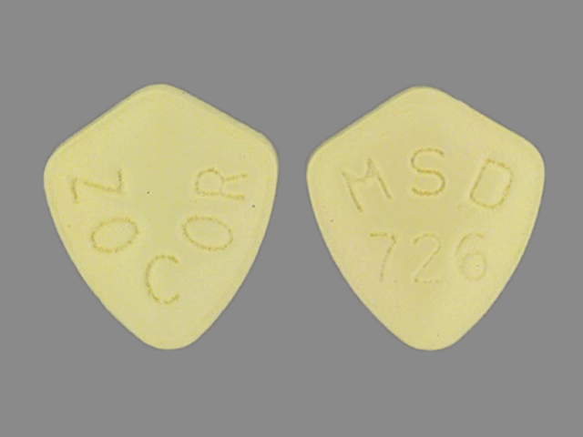 This medication is a Yellow Oval 9 mm, Film coated tablet with imprint "MSD;726;ZOCOR;5". It contains Simvastatin 5 mg; of Simvastatin[simvastatin];. This belongs to the Hmg-coa reductase inhibitor pharmacologic class. It is manufactured by Merck Sharp & Dohme Corp.. For details please contact your physician.