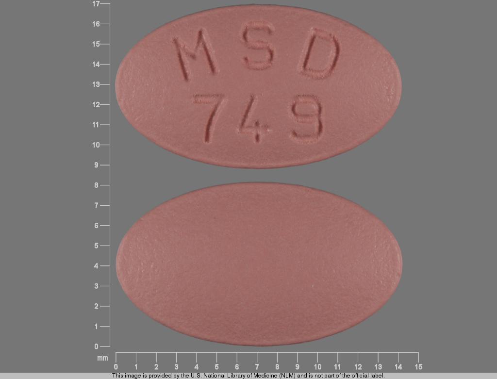 This medication is a Red Oval 14 mm, Film coated tablet with imprint "MSD;749". It contains Simvastatin 40 mg; of Simvastatin[simvastatin];. This belongs to the Hmg-coa reductase inhibitor pharmacologic class. It is manufactured by Merck Sharp & Dohme Corp.. For details please contact your physician.