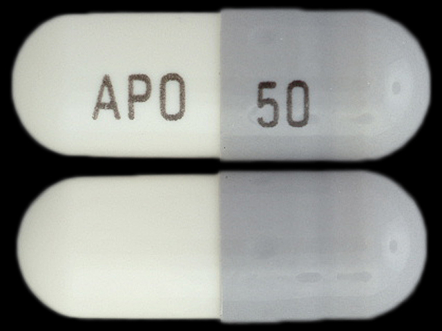 This medication is a White;gray Capsule 14 mm, Capsule with imprint "APO;50". It contains Zonisamide 50 mg; of Zonisamide[zonisamide];. This belongs to the Anti-epileptic agent pharmacologic class. It is manufactured by Apotex Corp.. For details please contact your physician.