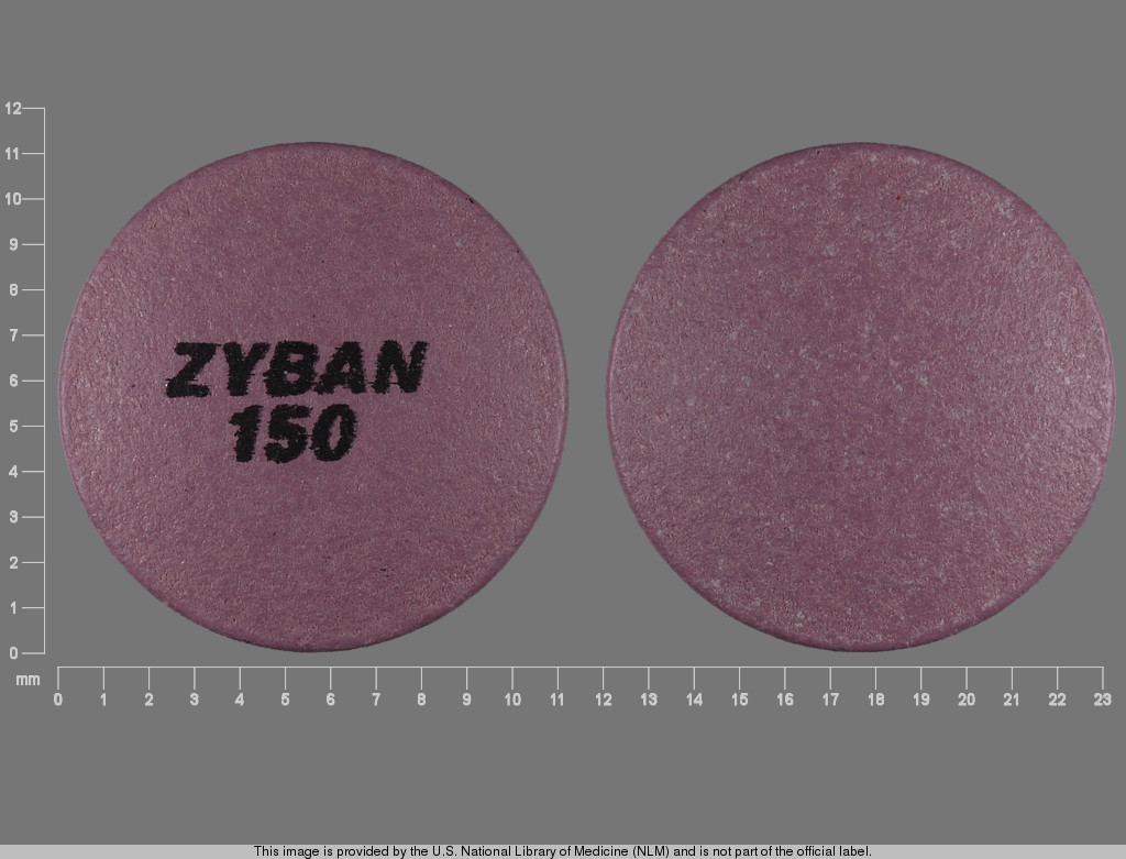 This medication is a Purple Round 11 mm, Film coated tablet with imprint "ZYBAN;150". It contains Bupropion hydrochloride 150 mg; of Bupropion hydrochloride[bupropion];. It is manufactured by GlaxoSmithKline LLC. For details please contact your physician.